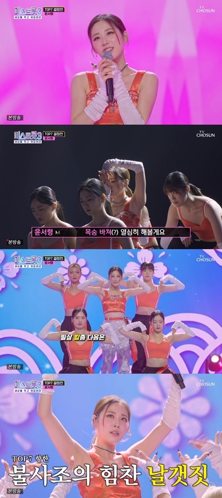 지난달 29일 방송된 TV CHOSUN ‘미스트롯3’에서 TOP10 참가자들의 준결승 무대가 공개된 가운데, 이날 윤서령은 ‘작곡가 신곡 미션’에서 위대한 형제의 ‘아라리요’로 무대를 펼쳤다.