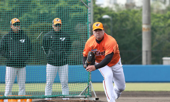 ‘괴물’ 류현진(한화)이 스프링캠프 첫 라이브 피칭을 소화했다. 2일 일본 오키나와현 야에세 고친다 구장서 라이브 피칭을 실시했다. 라이브 피칭은 타석에 타자를 세워놓고 투구하는 것으로, 실전 경기와 비슷한 상황을 조성한다. 포수 최재훈과 배터리 호흡을 맞췄다.