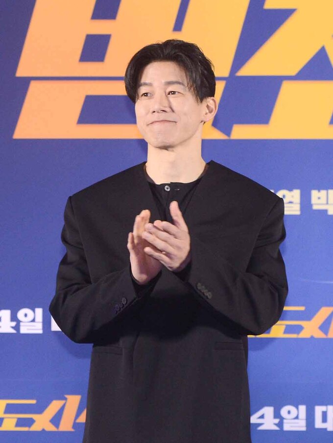 배우 김무열이 11일 메가박스 성수점에서 열린 영화'범죄도시4(허명행 감독)' 제작발표회에 참석하고 있다.