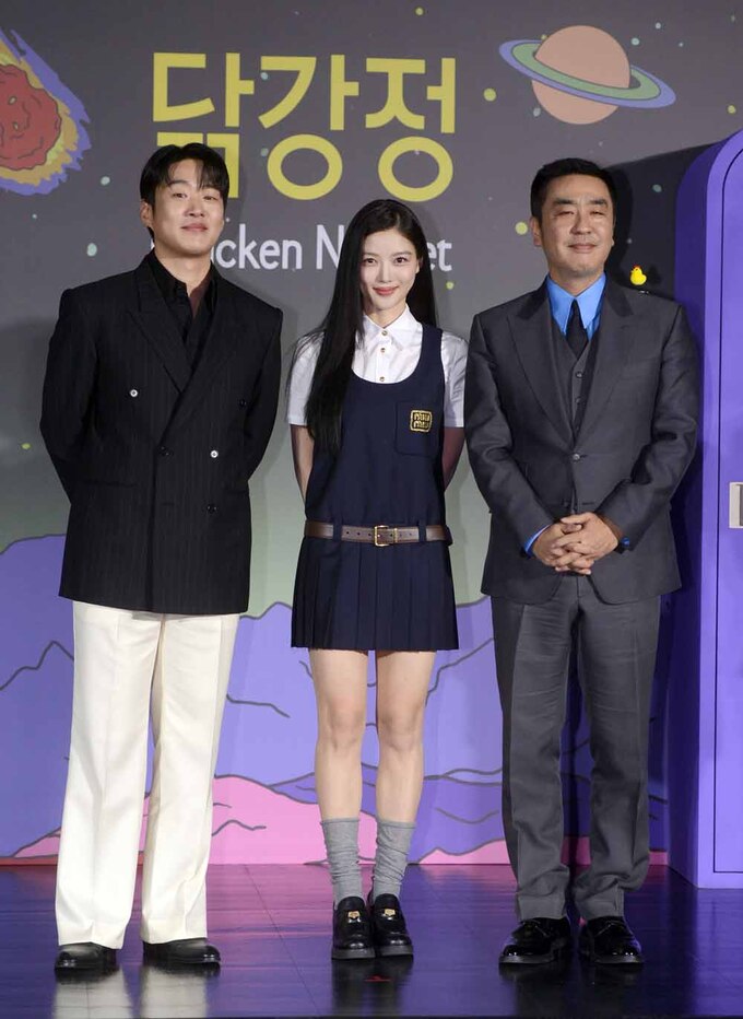 배우 안재홍, 김유정, 류승룡(왼쪽부터)이 13일 롯데시네마 건대점에서 열린 넷플릭스 시리즈'닭강정(감독 이병헌)'제작발표회에 참석하고 있다.