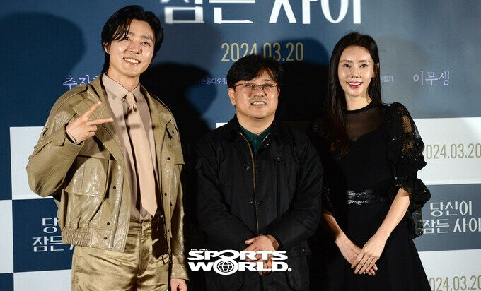 배우 이무생 장윤현 감독, 추자연(왼쪽부터)이 14일 CGV 용산아이파크몰에서 열린 영화 '당신이 잠든 사이' 언론시사회에 참석 하고 있다.