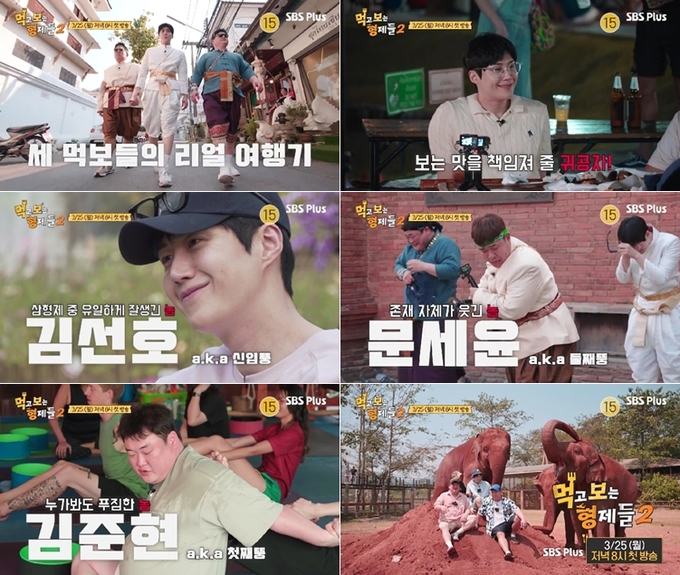 E채널·SBS Plus 공동 제작 예능 ‘먹고 보는 형제들2’가 25일 저녁 8시 첫 방송을 앞둔 가운데, 제작진은 태국 치앙마이로 떠난 김준현·문세윤·김선호의 캐릭터를 제대로 살린 ‘놈.놈.놈’ 버전의 예고편을 공개했다.