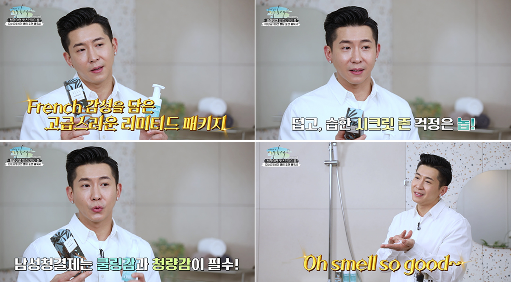 이날 방송에서 브라이언은 “운동 후 땀을 흘려도 물만 뿌리거나 대충 씻으면 오히려 몸에서 냄새가 더 날수도 있고 특히 샤워할 때 시크릿존까지 꼼꼼하게 잘 씻어줘야 하는데, 땀 많고 열 많은 남자 분들도 시원하게 쓸 수 있는 핫한 아이템을 공개한다”며 이너감 비건 쿨링 포맨 폼워시를 소개했다.