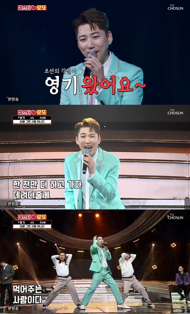 이어 영기는 영혼의 단짝이자 룸메이트였던 안성훈과 1대1 대결을 펼치게 됐다. ‘오빠 그런 사람 아니다’로 무대에 오른 영기는 무대 시작과 동시에 특유의 유쾌한 에너지를 폭발시킨 것은 물론, 역동적인 안무에도 흔들리지 않는 가창력과 무대 장악력으로 시청자들 마음을 단번에 사로잡기도 했다.