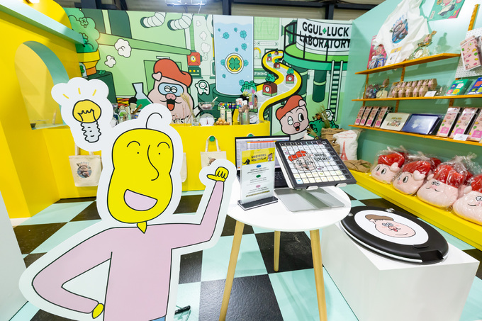 부스에서는 다양한 캐릭터 굿즈도 판매한다. ‘꿀럭 딜리버리’의 콘셉트에 맞게 행운을 담은 부적, 스티커 등 문구류와 아기자기한 리빙 용품 등이 마치 빵처럼 전시되어 있어 고르는 재미도 더한다.