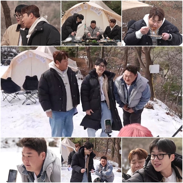 태국으로 출국하기 며칠 전, 세 사람은 문세윤의 캠핑 사이트에서 거국적인 첫 워크숍을 실시한다. 김선호는 엉덩이 사이즈가 국보급인 뚱보 형들과 달리 자신의 의자만 S사이즈인 것을 보자, “여기 (게스트) 대접이 좀 다르네?”라며 예능 토크에 시동을 건다. 뒤이어 세 사람은 삼겹살을 굽고 김선호의 ‘최애’인 떡볶이를 만들어 먹방에 돌입한다. 이때 문세윤은 “배우들은 몸매 관리해야 하는데 걱정”이라며 김선호를 염려하는데, 김선호는 “나 ‘먹보형’ 하려고 7kg 찌워왔어”라며 사뭇 엇나간 열정을 뿜어 모두를 폭소케 한다. 문세윤은 “너 태국 갔다 오면 사람들이 김선호인지 김준현인지 못 알아볼 정도로 먹어야 한다”고 너스레를 떨어 김선호를 급 섬뜩하게(?) 만든다.