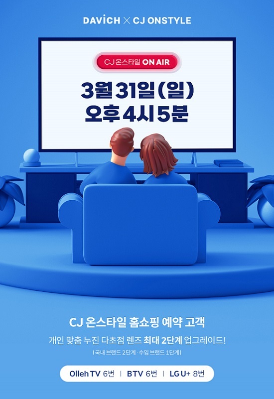 시력교정 브랜드 다비치안경이 31일 일요일 오후 4시 5분 CJ온스타일 홈쇼핑에서 노안 교정을 위한 ‘개인맞춤 누진다초점렌즈’를 방송한다고 30일 밝혔다.