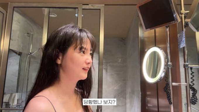 영상 속 윤승아는 화장을 하면서 “다시 맞는 브러쉬로 이렇게 한번 깔아주고, 이런 느낌”이라고 설명했다. 그는 “여기는 조명이 되게 노랗다 오빠”라며 “그래서 되게 노랗게 보여. 얼굴이. 나 지금 얼굴이 노래?”라고 물었다. 이어 윤승아는 “이것 때문에 그런가 보네”라며 거울 조명을 확인했다.