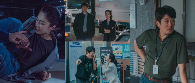 이 가운데 공개된 스틸컷에는 반전의 티키타카가 포착돼 시선을 사로잡는다. 형사의 프로페셔널한 아우라가 고스란히 느껴지는 민소희와 정채만. 동시에 무슨 문제라도 생겼는지 눈을 질끈 감고 어쩔 줄 모르는 정채만과 그를 달래기 위해 애쓰는 민소희의 모습이 담겼다. 어떤 상황에서도 팀원들을 지켜줄 것만 같은 포스를 가진 정채만이 사실은 지켜줘야 하는 상사였던 것인지, 두 사람의 흥미로운 케미가 벌써부터 머릿속에 그려져 웃음을 자아낸다.