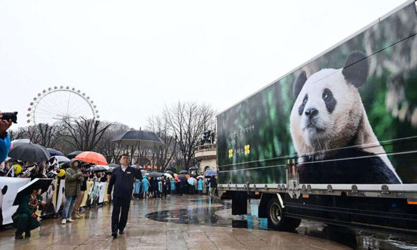 이날 푸바오가 공항으로 떠나기 전 에버랜드는 푸바오 배웅 행사를 진행했다. 용인 지역에는 오전내내 굵은 빗줄기가 쏟아졌지만 현장에는 6000여 명의 팬이 운집했다. 푸바오가 탄 차량은 판다월드에서 장미원까지 천천히 이동했다. 팬들은 차에 실린 푸바오를 직접 볼 수 없었다. 대신 장미원에서 사육사들이 푸바오에게 보내는 편지를 낭독하는 시간을 통해 아쉬움을 달랬다.
