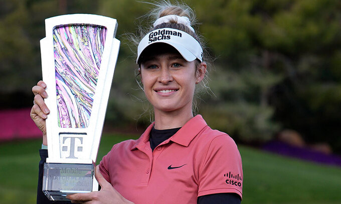 여자골프 세계랭킹 1위 넬리 코다(미국)는 8일 미국 네바다주 라스베이거스 섀도크리크(파72·6804야드)에서 열린 미국여자프로골프(LPGA) 투어 T-모바일 매치플레이 결승전에서 리오나 매과이어(아일랜드)를 꺾고 대망의 우승을 차지했다. 통산 12번째 우승과 함께 상금 30만달러(약 4억원)를 손에 넣었다.