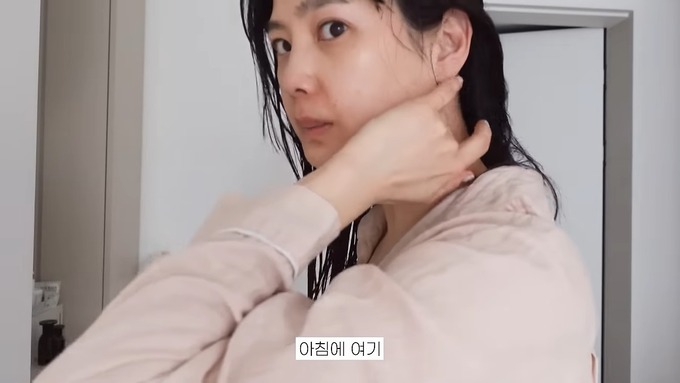 윤승아는 “오늘은 날씨가 지금은 흐린데 금방 맑아질 거 같아서”라고 말하다가 “아침에 여기 마사지 해 주면 진짜 좋거든요”라고 목덜미를 마사지했다. 그는 “풀어주기”라고 덧붙였다.