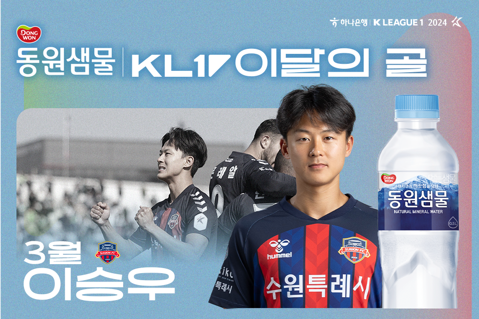 수원FC 공격수 이승우가 2024시즌 3월 K리그 ‘마시는 천연 미네랄 동원샘물 이달의 골'을 수상했다.