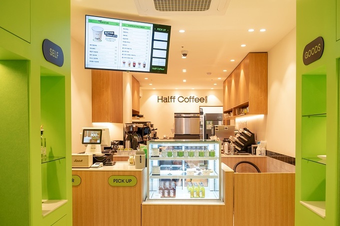 브랜드에 따르면 새롭게 론칭하는 '하프커피 익스프레스'는 직영점의 운영 노하우를 바탕으로 고객 접근성을 높이고 신선한 컨셉트를 도입했다. 특히 로스팅 되지 않은 원두의 연둣빛 색감에서 영감을 받아 연두색을 브랜드 키 컬러로 선정해 자연 친화적이고 싱그러운 매장 분위기를 구현했다.