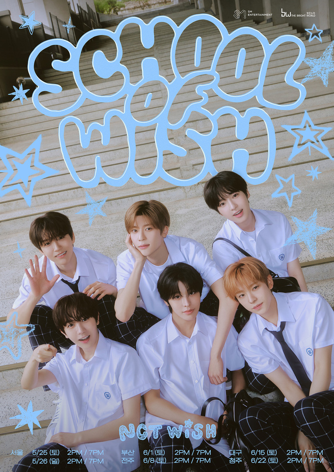 더불어 오픈된 팬미팅 투어 포스터에는 학교 콘셉트에 맞춰 스쿨룩을 입은 NCT WISH의 청량한 비주얼이 함께 담겨 있으며, 밝은 미소를 띄고 있는 멤버들의 모습에서는 첫 팬미팅을 앞둔 설렘과 풋풋함이 느껴져 좋은 반응을 얻고 있다.