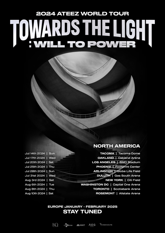 앞서 서울과 일본에서 ‘투워즈 더 라이트 : 윌 투 파워’를 개최한 에이티즈는 화려한 스케일의 무대 연출과 폭발적인 퍼포먼스로 팬들의 열띤 호응을 이끌어내며 2024 월드투어의 포문을 성공적으로 열었다. 이에 앞으로 진행될 북미와 유럽 투어 공연에 대한 기대감이 높아지고 있다.