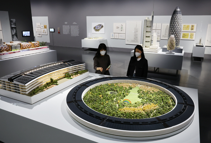 서울시립미술관은 25일 전시회 ‘미래긍정: 노먼 포스터, 포스터 + 파트너스’를 개막했다. 우주선 모양으로 유명한 미국의 애플 파크, 홍콩의 홍콩상하이은행, 영국 블룸버그 본사 등이 대표적인 포스터의 건축물이다.