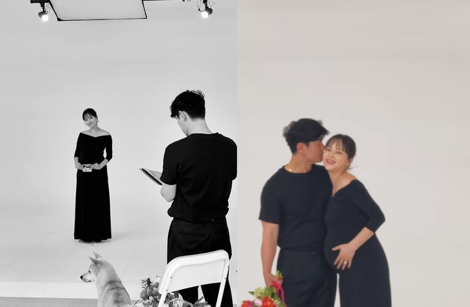 그룹 슈가 출신 방송인 아유미가 만삭 화보 촬영 모습을 공개했다.