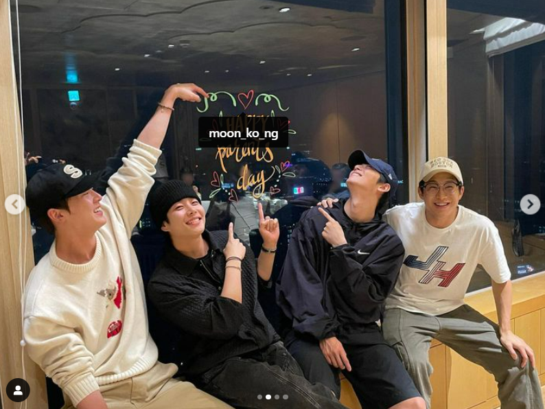 5일 진진, 윤산하, MJ는 각자 자신의 인스타그램에 어버이날을 맞아 가족 모임을 함께한 아스트로 멤버들의 모습을 공개했다. 윤산하는 "우린 어른의 날. 낳아주셔서 감사합니다"라고 했고 진진은 게시글에 "미리 어버이날. 아스트로 낳아주셔서 감사합니다"라고 적었다. 특히 진진은 "우리 수아도 낳아주셔서 감사하다"라고 댓글을 적는 건 물론 문빈의 계정을 태그했다.