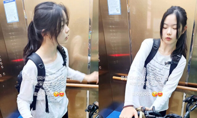 공개된 사진 속 성빈은 엘리베이터 앞에서 자전거를 끌고 있는 모습. 훌쩍 자란 그의 모습이 시선을 모은다.
