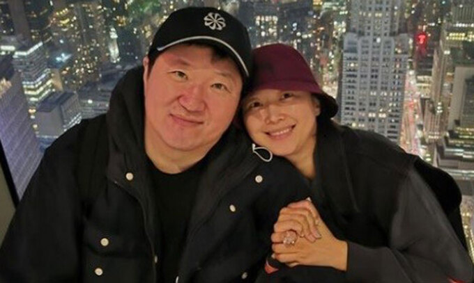 공개된 사진 속 한유라는 정형돈과 팔짱을 끼고 다정하게 포즈를 취한 모습. 알콩달콩한 부부의 모습이 시선을 모은다.