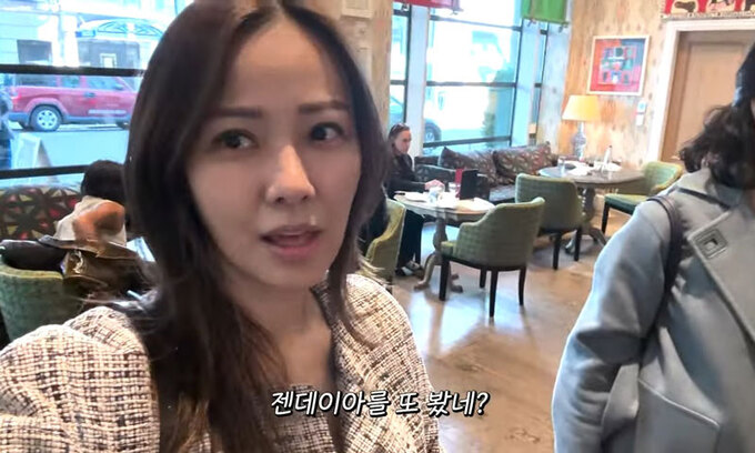 이어 손태영은 카페로 들어가서 “커피 마시러 왔다가 젠데이아 봤네”라며 신기해했다. 그는 “모자를 쓰고 있어서 얼굴은 못 봤지만 젠데이아 본 것도 또 찍어야지 뭐”라고 말을 꺼냈다. 손태영은 “우리는 꼭 하나씩 이슈가 있는 거 같아”라고 말했다. 그는 “오늘 백화점에서 좀 되게 힘들었는데 또 이걸로 또 재미를 주네요. 커피 마시고 갈게요”라고 영상을 마무리했다.