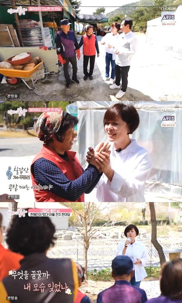 한혜진은 12일 오전 방송된 TV조선 '엄마의 봄날'에 일일 봄날지기로 등장했다. 평소 '엄마의 봄날' 애청자라고 밝힌 한혜진은 "저희 어머니도 연세가 많으셔서 아픈 곳이 많아지셨는데 농사를 짓는 어머니들은 특히 더 안 좋으신 것 같다"며 봄날지기로 활약을 예고했다.