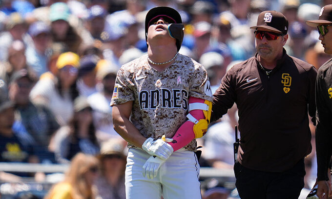 메이저리그(MLB) 샌디에이고 파드리스의 김하성이 투구에 맞아 교체됐다.