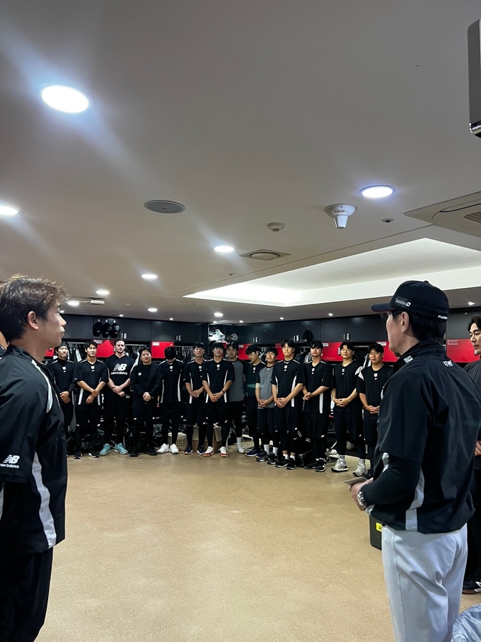 김 감독은 “비록 성적은 좋지 않지만 기 죽지 말고 잘 이겨냈으면 좋겠다. 고참들이 이끌고 후배들이 따라가면서 더그아웃 분위기를 좋게 만들려고 노력하는 마음을 잘 안다. 우리 잘 해보자. 챙겨줘서 고맙다“고 답했다.