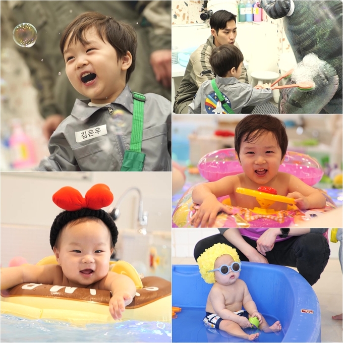 평소 은우는 매사에 신중한 태도를 보이며 조심성 많은 성격을 보여줬던 바. 그랬던 은우가 알을 깨고 나오듯 한 단계 나아가 용감한 면모로 뽐낸다고 해 눈길을 끈다. 놀이 센터에 방문한 은우는 낯선 환경에 어색해 하는 것도 잠시, 아빠 김준호가 물풍선을 터뜨리는 시범을 보이자 “또 해주세요”라며 적극적인 관심을 보인다. 이어 은우는 물감 범벅이 된 대형 공룡 피규어를 목욕시켜 달라는 미션을 받고 눈빛을 반짝인다. 은우는 마치 '최연소 공룡 훈련사'가 된 듯, 청소 솔을 직접 가져와 야무진 손놀림으로 공룡 다리를 거품 목욕시켜주며 카리스마를 내뿜는다고 해 '적극 은우'의 반전 매력에 기대가 치솟는다.