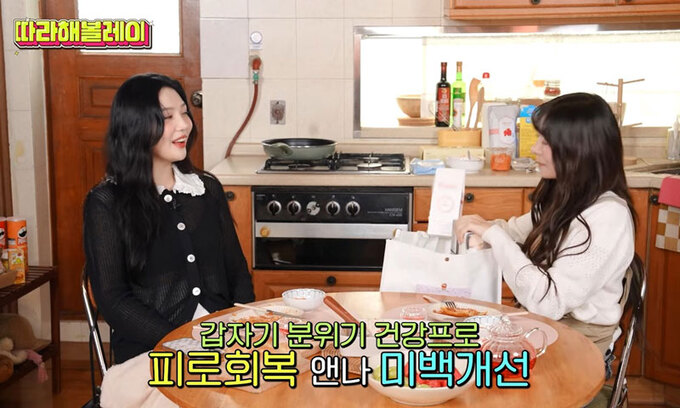 조이는 “그래서 또 갖고 왔지”라며 “이게 뭐냐면 글루타티온 캔디라서..”라고 설명했다. 이어 그는 “피로회복과 얼굴을 밝게 해주는 데 도움을 줘. 그래서 다이어트할 때 그냥 하나씩 먹어”라고 덧붙였다. 계속해서 조이는 마스크팩 또한 선물하며 “밤에 자기 전에 하고 아침에 일어나면 얼굴이 되게 쫀쫀해져 있어”라고 말했다.