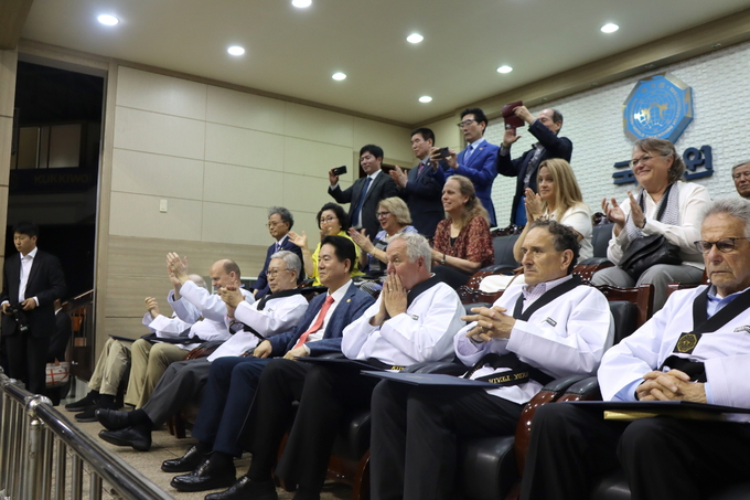 김창준 전 의원은 “전 의원들과 함께 태권도의 중심인 국기원을 방문해서 기쁘다. 명예 단증을 받은 만큼 막중한 책임감을 느끼며, 앞으로 한미 양국에서 태권도를 통한 문화 교류를 지속적으로 이어나갈 수 있도록 노력하겠다”고 소감을 밝혔다.