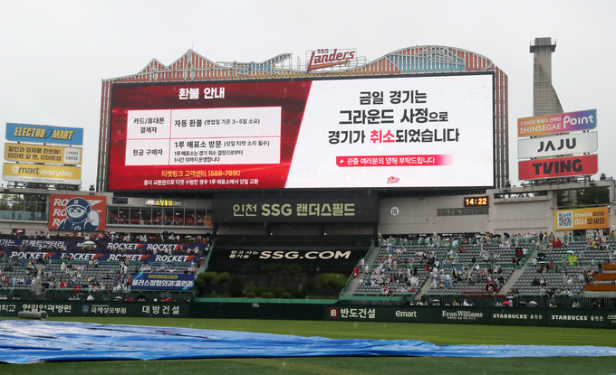 프로야구 SSG와 한화의 시즌 9차전이 취소됐다. 26일 인천 SSG랜더스필드에서 열릴 예정이었으니 경기 전부터 내린 비로 인해 그라운드 사정이 좋지 않았다. 상황을 지켜보다 결국 취소 판정을 내렸다.