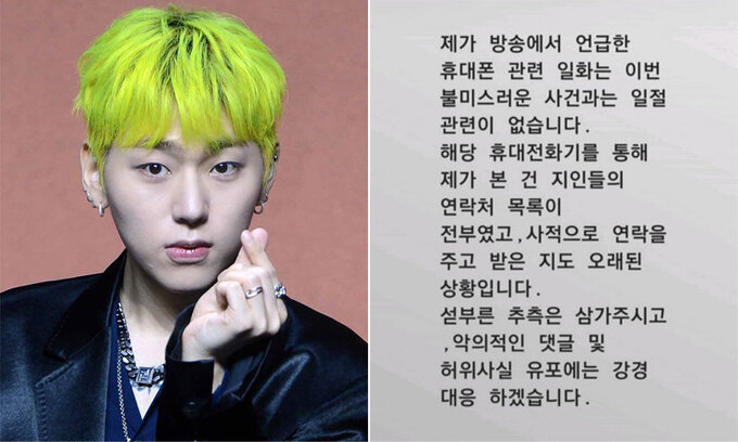 이후 정준영의 불법 동영상 촬영 및 유포 혐의가 밝혀진 후 지코의 발언이 재조명됐다. 이에 지코는 “제가 방송에서 언급한 휴대폰 관련 일화는 이번 불미스러운 사건과는 일절 관련이 없다”고 해명했다.