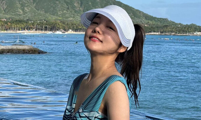 사진 속 문지인은 하와이 리조트에서 바닷가를 배경으로 행복을 만끽하고 있다. 선캡과 함께 하늘색 수영복을 입은 그는 군살 하나 없이 늘씬한 몸매를 자랑했다.