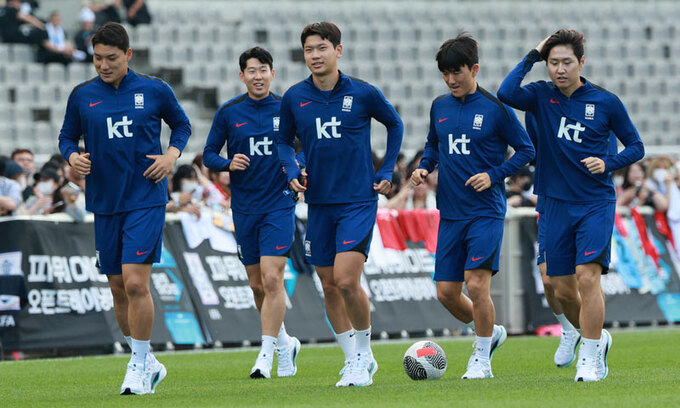 손흥민과 이강인, A매치 데뷔골을 터뜨린 주민규, 배준호 등 대표팀은 지난 8일부터 고양종합운동장에서 훈련을 하며 중국전에 대비하고 있다. 8일 300여 팬들과 함께 오픈 트레이닝을 실시한 대표팀은 시종 일관 밝은 분위기 속에서 일정을 소화했다.