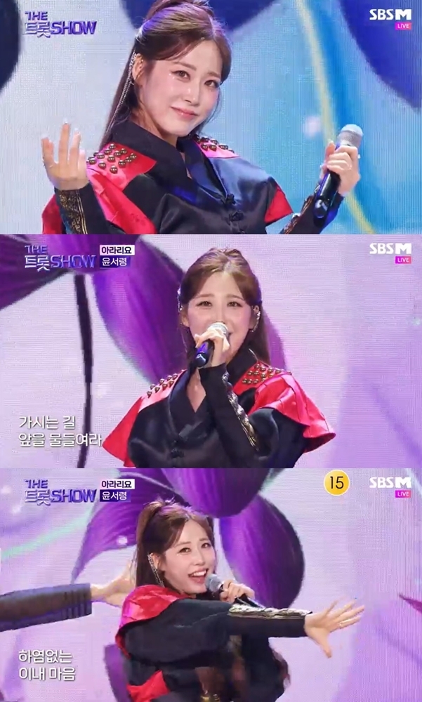 윤서령은 10일 오후 8시 방송된 SBS M, SBS FiL ‘더트롯쇼’에 출연, ‘아라리요’ 무대로 현장을 완벽히 접수했다.