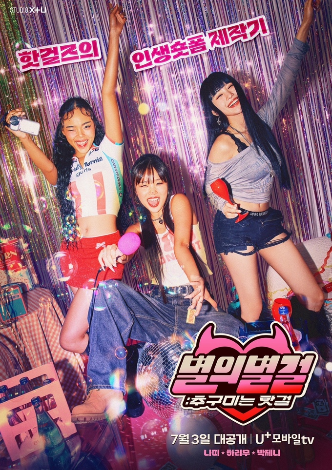 LG유플러스의 'STUDIO X+U'가 제작하는 하이텐션 핫걸리티 ‘별의별걸: 추구미는 핫걸’이 12일 MZ 핫걸(girl) 나띠X하리무X박제니의 상큼미, 과즙미 터지는 블링블링 메인 포스터를 공개했다.