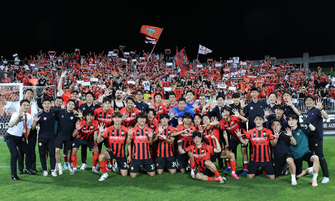 프로축구 강원FC는 15일 춘천송암스포츠타운 주경기장에서 열린 하나은행 K리그1 2024 17라운드 수원FC와 홈경기에서 3-1로 승리했다. 전반 12분 유인수의 선제골로 리드를 잡은 강원은 후반 9분 동점골을 내줬으나 후반 10분 야고, 후반 20분 양민혁의 연속골을 묶어 짜릿한 승리를 차지했다. 강원은 리그 5연승을 질주했다. 리그 5연승은 지난 2017년 5~6월 이후 7년 만이다.
