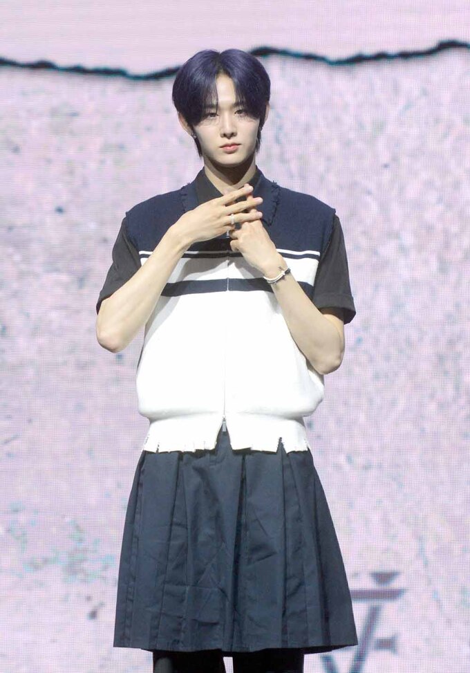 그룹 이븐 지윤서가 17일 광장동 예스24 라이브홀에서 진행된 세 번째 미니앨범 '라이드 오어 다이’(RIDE or DIE)' 쇼케이스에 참석하고 있다.