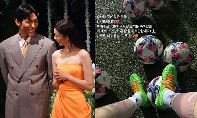 앞서 17일 김진경은 김승규와 서울 모처에서 결혼식을 올렸다. 두 사람은 공통 분모인 축구로 가까워져 연인으로 발전했다.