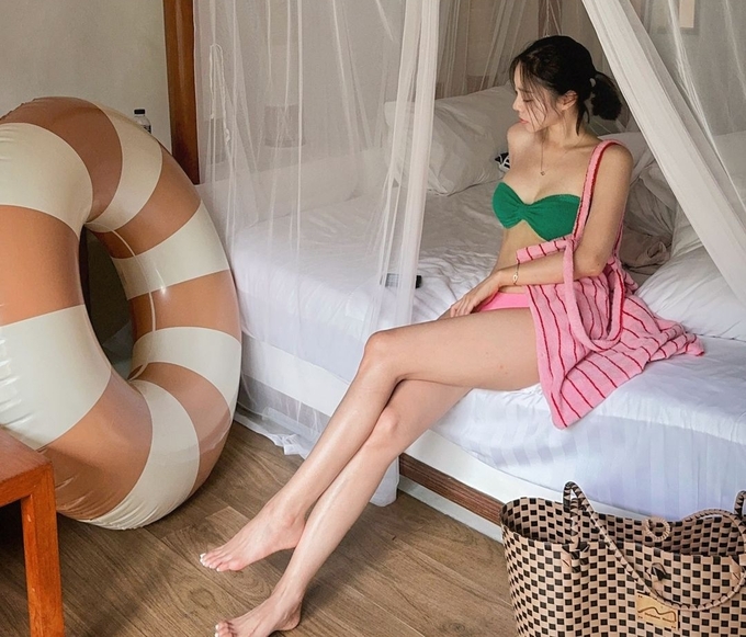 사진 속 이슬이는 휴양지에서 튜브톱 스타일의 비키니를 입고 몰라보게 섹시한 몸매를 자랑했다. 여기에 핑크색 비키니 하의와 타월은 그녀의 피부 톤을 더욱 돋보이게 했다. 군살 하나 없는 이슬이의 건강하고 아름다운 몸매는 보는 이의 감탄을 부르기 충분했다.