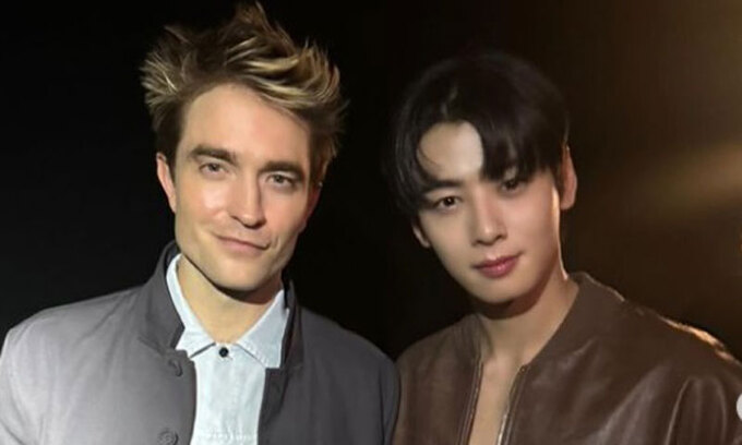그룹 아스트로 겸 배우 차은우가 헐리웃 배우 로버트 패틴슨과의 투샷을 공개했다.