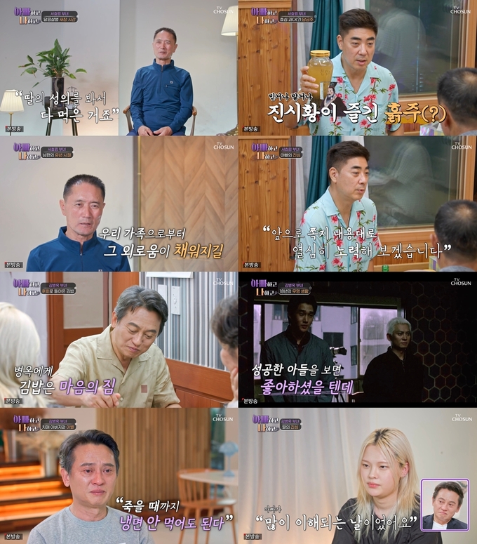 산소에서 내려온 뒤 김병옥은 딸과 함께 아버지가 생전 좋아했던 설렁탕과 냉면을 먹으러 이동했다. 그는 "아버지는 사연이 많으신 분"이라고 말했다. "고향이 이북이고 이북에 본처와 자식이 있다"라고 밝혔다. 이어 "1년에 한번 이북 오도민 체육대회에서 낭독을 하시며 우시는 아버지 모습이 가장 마음이 아팠다"라고 전하기도 했다. 김병옥은 치매로 투병했던 아버지를 생각하며 눈물을 흘렸다. 그는 치매가 심해진 아버지와 요양병원으로 향하던 순간을 회상하며, "발걸음이 떨어지지 않아 두 번 차를 세웠다. 아버지하고 나하고 마지막 같아 조금이라도 더 같이 있고 싶었던 것 같다"라고 고백했다. 또, "죽고 싶은 심정이었다"라는 말로 아버지를 끝까지 모시지 못해 죄송한 마음을 토해냈다.
