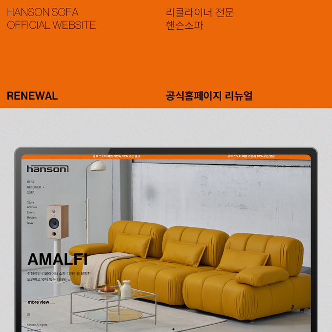 리클라이너 소파 전문 브랜드 핸슨소파가 공식 홈페이지를 리뉴얼 오픈하고 기념 프로모션을 실시한다고 4일 밝혔다.