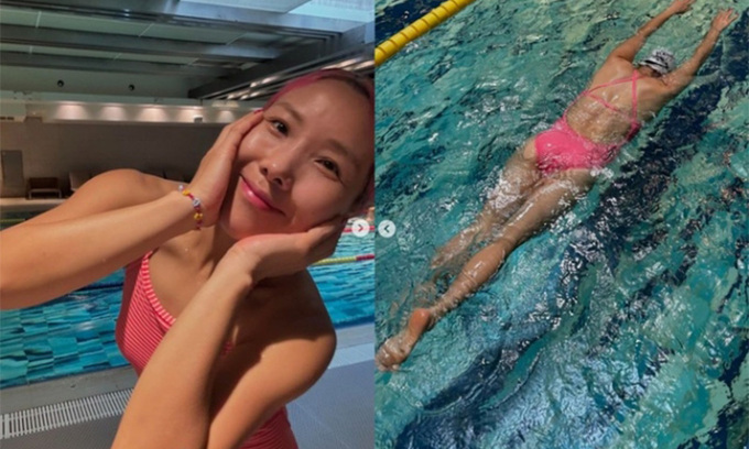 공개된 사진 속 신봉선은 수영장에서 물놀이를 즐기는 모습. 다이어트에 성공하며 11kg를 감량한 그는 늘씬하면서도 건강미 넘치는 몸매를 자랑해 시선을 모은다.