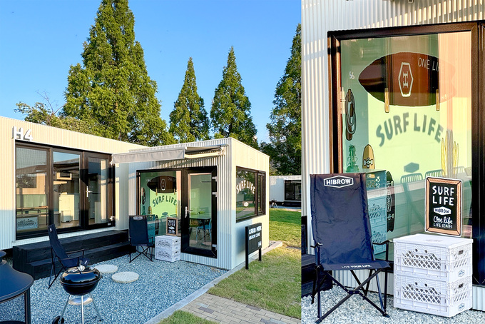 지난 6월 새롭게 오픈한 ‘캐빈 파크’ 총 8개 구역(A-H) 중 H구역을 ‘하이브로우 캐빈 존’으로 꾸며 색다른 경험을 제공한다. 각 캐빈은 서핑, 바이크, 캠핑, 골프 등 각기 다른 라이프스타일 및 취미 테마로 꾸며진다. 이를 토대로 하이브로우의 다양한 캠핑 제품을 이용할 수 있을 뿐 아니라 프라이빗하게 즐길 수 있는 다이닝룸도 마련되어 있어 바비큐와 불멍을 즐기기에도 제격이다.