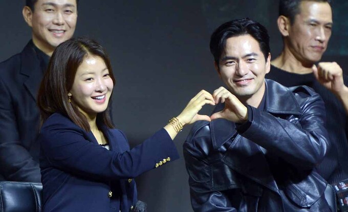 배우 이시영(왼쪽)과 이진욱이 17일 JW 메리어트 동대문 스퀘어에서 열린 넷플릭스 시리즈 ‘스위트홈 시즌3’ 제작발표회에 참석하고 있다.