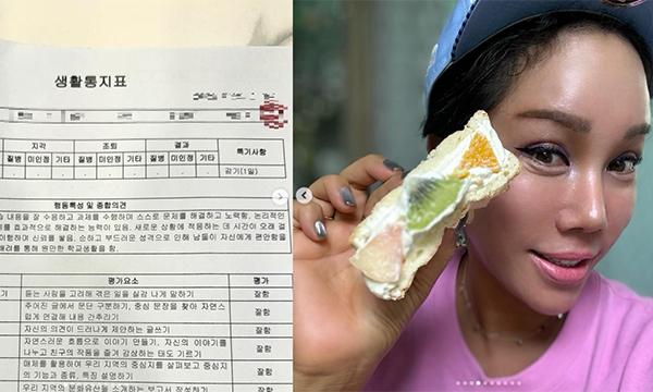 21일 김송은 자신의 SNS를 통해 “내새꾸 통지표 all 수예요. 반에서 올 수 3명이래요. 기특해라. 엄마는 딱 한번 중1 때 영어만 수 (딱 한번. 라이벌이 있었다가 전학 가서 까먹지도 않아ㅋㅋㅋ) 나머진 미 양 가”라는 글과 함께 아들의 성적표를 공개했다.