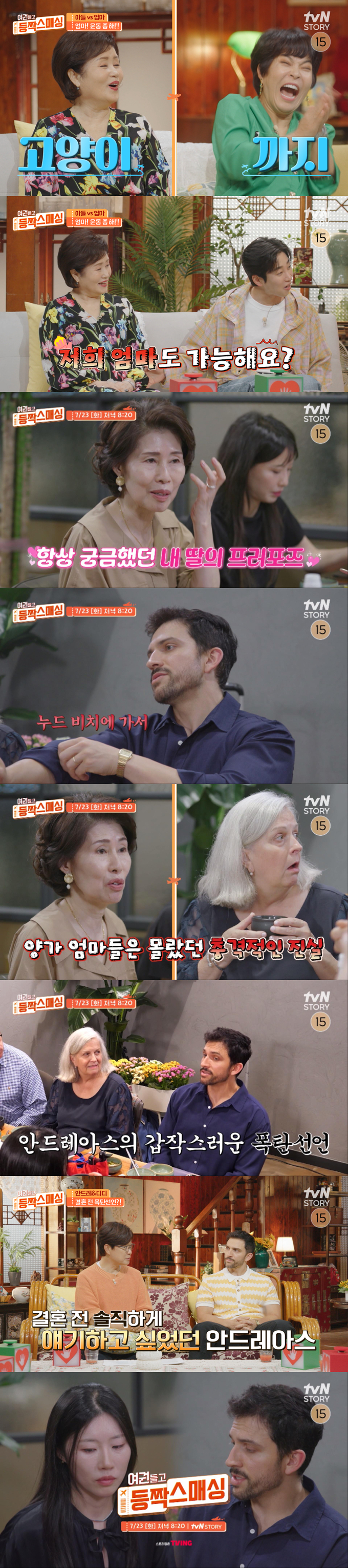 배려와 사랑이 넘치는 상견례 현장에서 가족들은 가장 궁금했던 안드레아스 부부의 프러포즈 썰을 궁금해하고, 이에 안드레아스는 “나체로 프러포즈를…”라고 운을 떼 현장을 초토화시킨다.